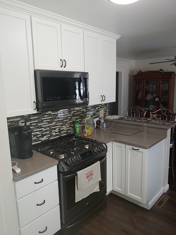 Apartment kitchen updated with Koch Express Cabinetry & Wilsonart Laminate Countertops
